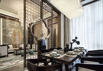 主要材質:地面采用拼花磚,墻面以高機灰護墻為主,輔以墻布