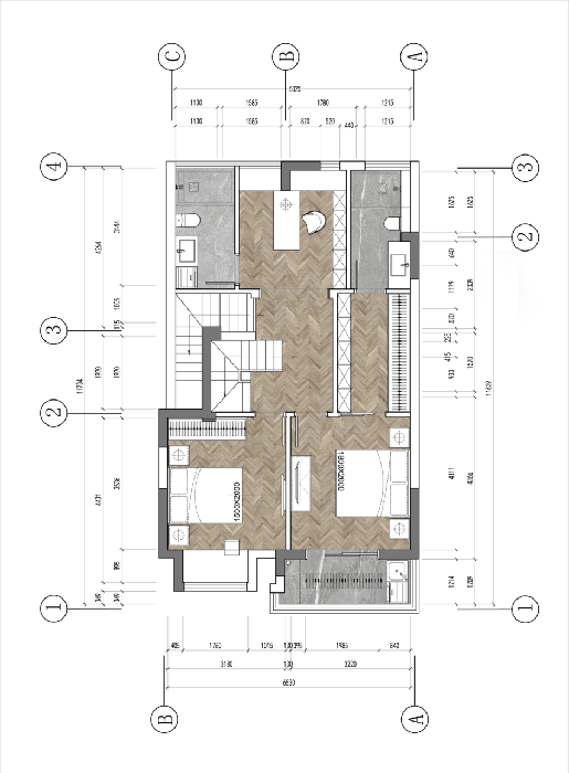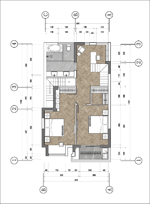 二樓方案①主臥和次臥做了兩個小套房,衛生間做到了北面。連接開放式書房。