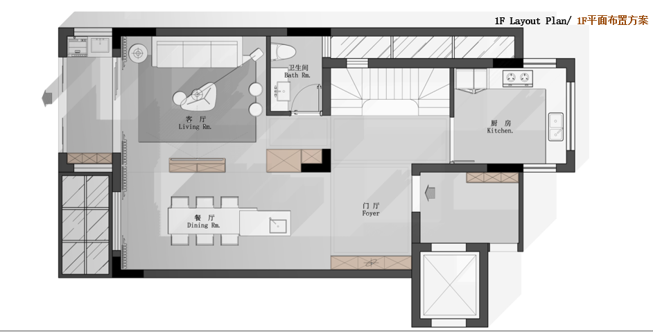 1F:客廳,餐廳,門廳,廚房,衛生間【97㎡】