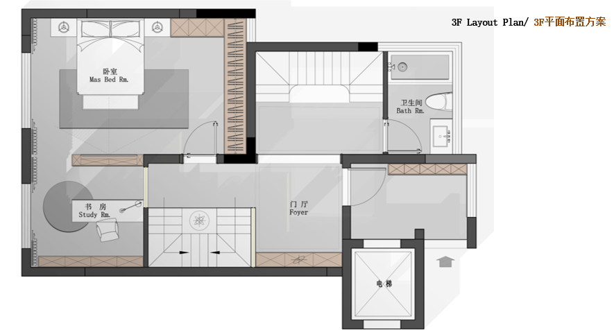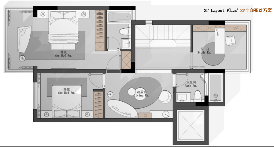 2F: 臥室套房,臥室,起居室,衛生間,書房【88.5㎡】