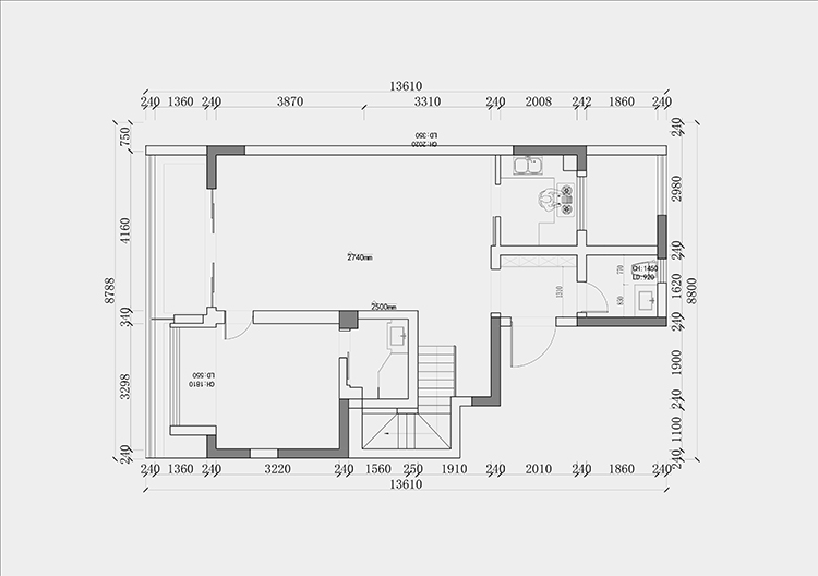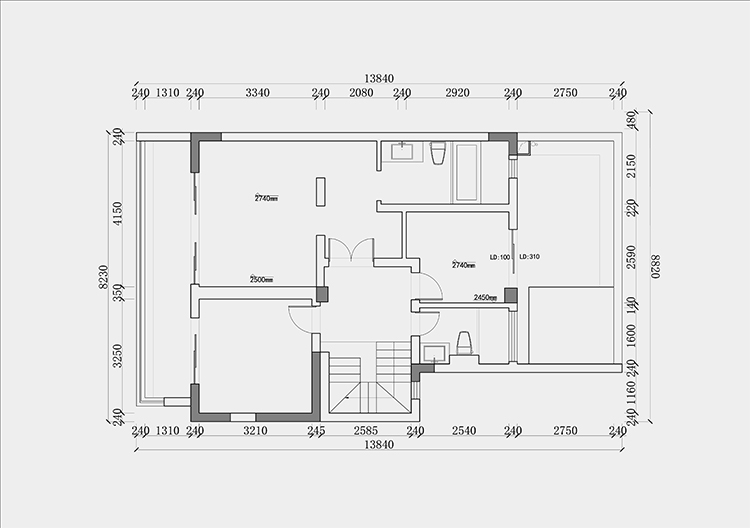 這個客戶想要全部砸掉重新裝,想裝個電梯直接上三樓,二樓打算給女兒住,希望電梯不要經過二樓生活區。