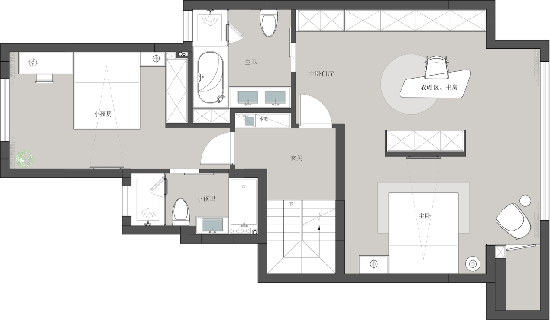 4?二樓作為主要的休息區(qū),是一個大套房和小套房,滿足了日常的人口居住需求,同時提升了生活品質。